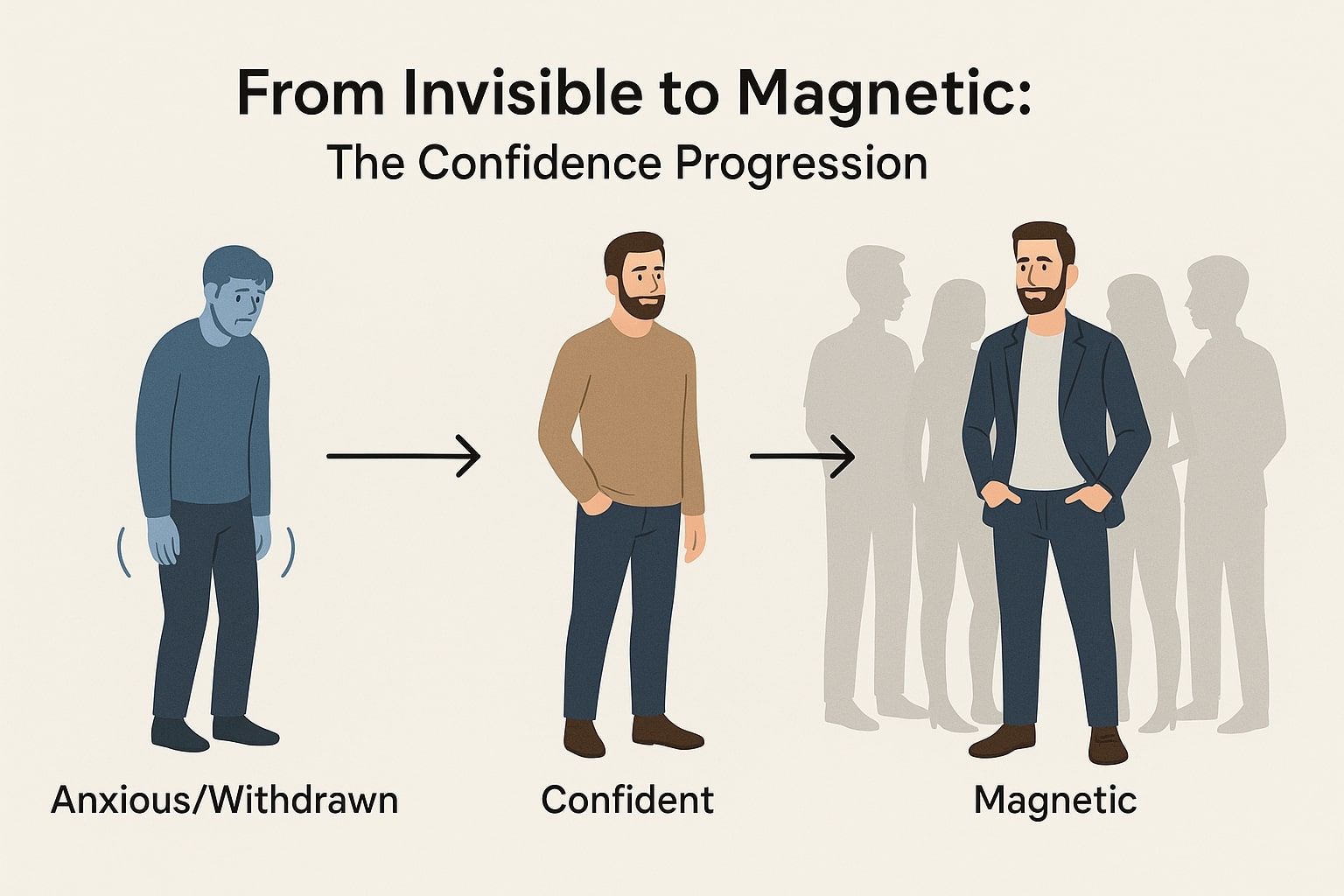 Phase 2: Bridge to Neutral Territory Take that confident version of yourself and apply it in neutral environments. Coffee shops, bookstores, casual social events. The goal isn’t perfection—it’s transferring your existing confidence to new situations.